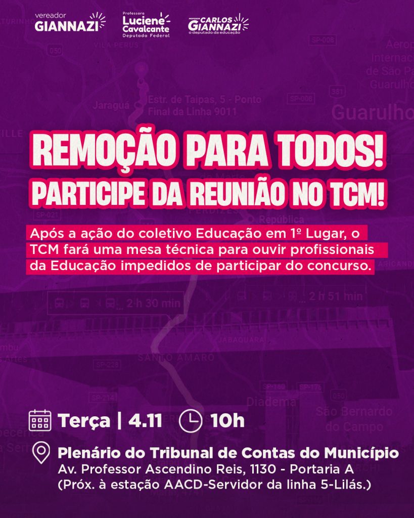A luta do vereador Giannazi em defesa da escola pública continua. Não podemos abandonar a Educação nas mãos de pessoas nefastas como Ricardo Nunes e Tarcísio de Freitas. Vou começar pela questão da remoção. Na próxima terça-feira (4/11), haverá um encontro importantíssimo no Tribunal de Contas do Município (TCM).